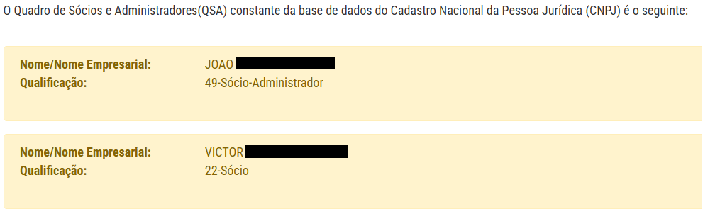 Como mostra o exemplo acima, o QSA apresenta os nomes de João e Victor. Contudo, apenas João pode assinar o atestado, pois sua qualificação é de Sócio-administrador.