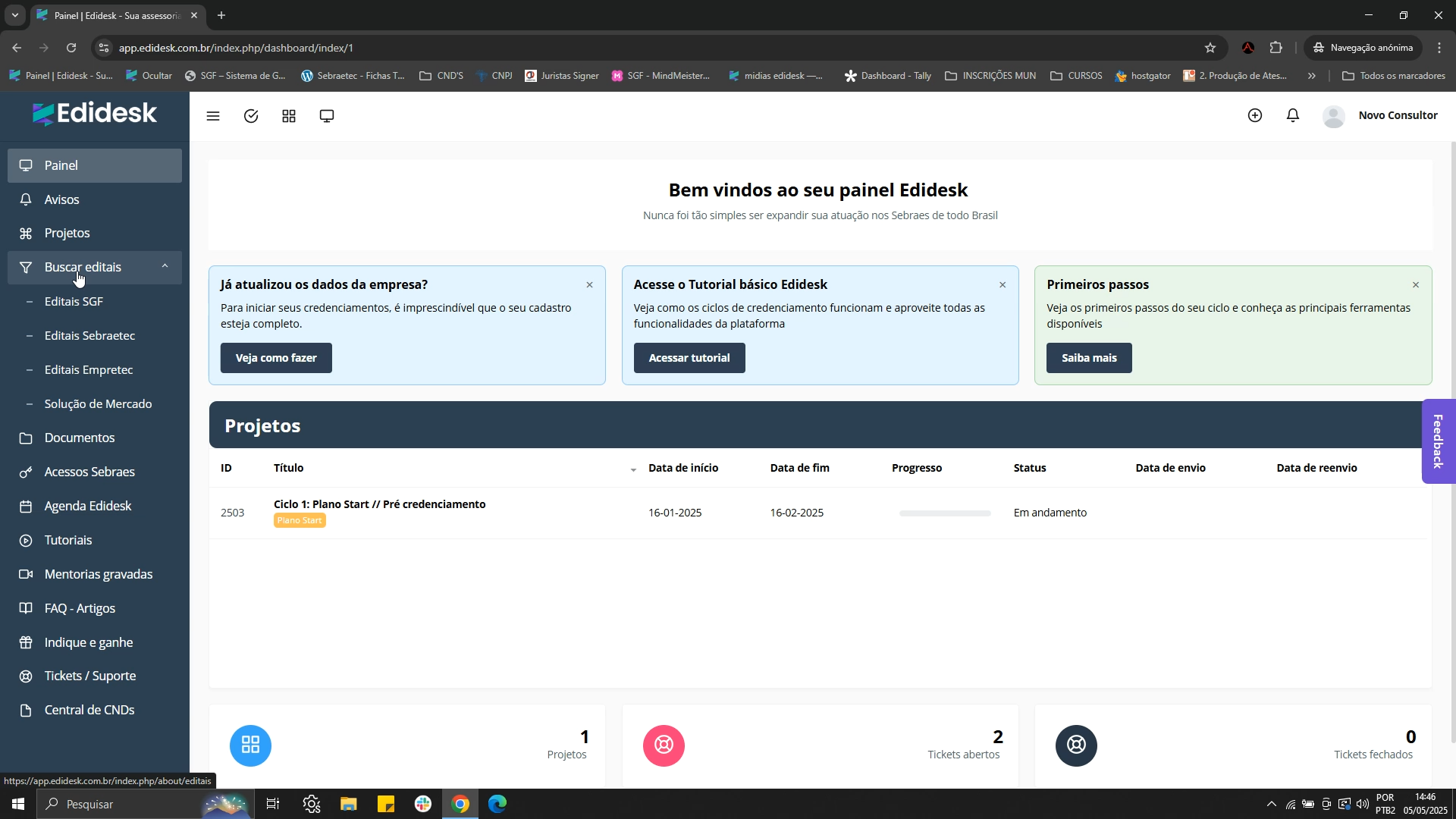 Atenção: Você só pode solicitar editais de acordo com o número de créditos disponíveis no seu plano!