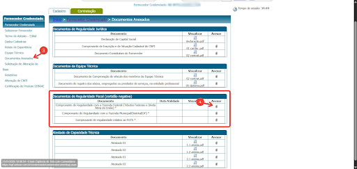 Seta 4: para anexar basta clicar onde indica a seta 4 e anexar a CND nova.